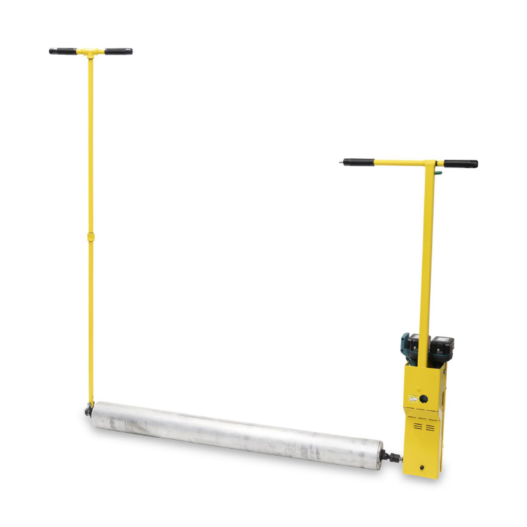 Spin Screed® es la primera regla de rodillos eléctrica liviana del mundo. Nuestro diseño resistente consta de un tubo de aluminio, disponible en longitudes que van desde 4' a 22' para adaptarse a casi cualquier tamaño de trabajo, y un taladro en ángulo recto. A medida que empuja la regla, este taladro hace girar la tubería en la dirección opuesta, de esa manera el concreto húmedo se enrolla frente a la tubería mientras la regla trabaja para cortar los puntos altos y llenar los puntos bajos, creando una superficie más plana.