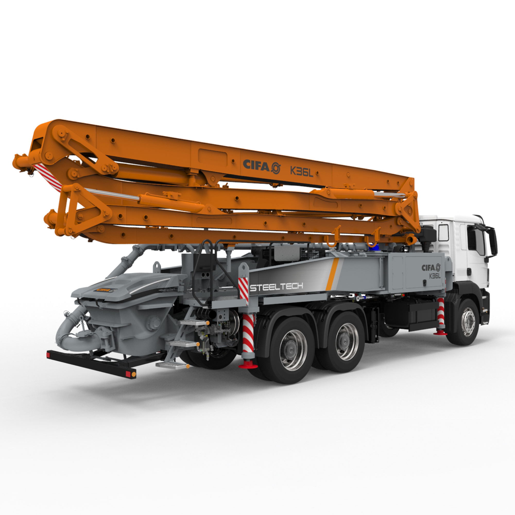 La bomba de hormigón montada en camión K36L es la elección perfecta para sitios medianos y pequeños. Puede funcionar también cuando se necesita una gran capacidad, como por ejemplo, puentes, vertidos profundos, estacionamientos y sótanos. La bomba puede equiparse tanto como una unidad de bombeo de circuito abierto como de circuito cerrado para lograr los más altos rendimientos.