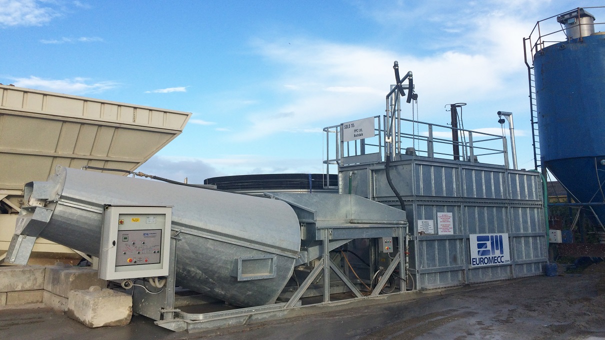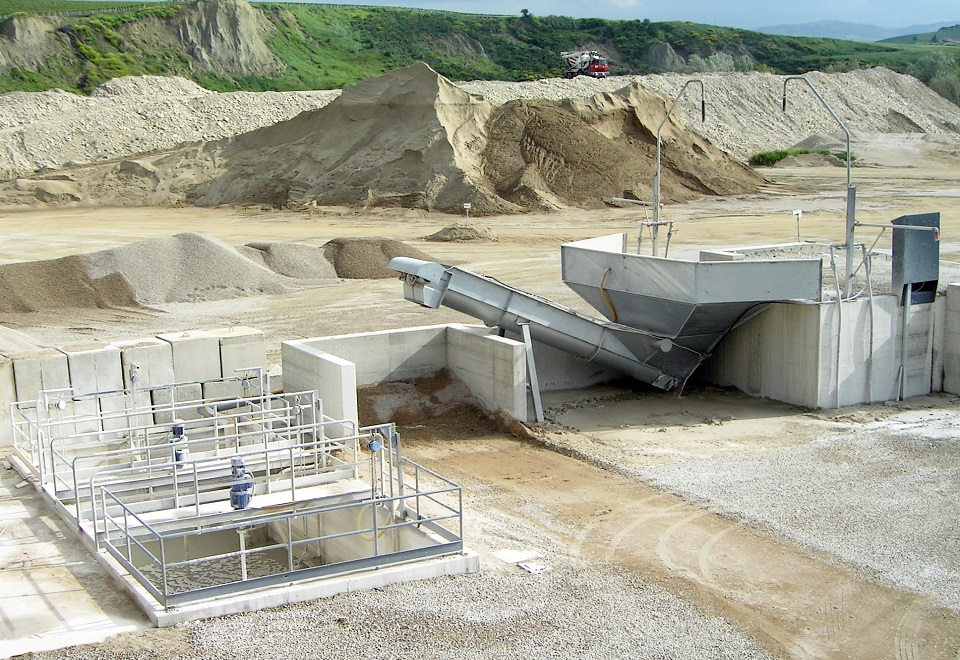 Los sistemas EURO-ECO y EURO-WASH están diseñados para tratar el hormigón residual contenido en las hormigoneras y bombas al final del ciclo de trabajo. Este hormigón diluido, mediante un sistema de separación de tornillo, se divide en áridos y agua que contiene las partículas de cemento y limo. Los áridos lavados pueden reutilizarse en el ciclo de producción de hormigón; mientras tanto, el agua, vertida en tanques especiales equipados con agitadores para mantener el material sólido en suspensión, se utiliza, mediante bombas sumergibles adecuadas, tanto en el ciclo de producción como en el lavado de las hormigoneras.